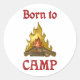 A camper will enjoy this fun design with a shiny campfire and the words - Born to Camp. Makes a great gift for a camping lover.