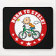 A stick figure bicyclist mousepad with text that reads "Born to Cycle", perfect for anyone who loves bicycling and stick figures!