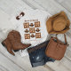 This "Born to Dance" line dancing t-shirt brings the charm of the country to life. Featuring bold block-style design paired with elegant script calligraphy, the design is accented by cowboy hats and unique croquette bows filled with a cow pattern. The earthy brown and beige tones add a rustic vibe, perfect for any line dancing enthusiast. Comfortable and stylish, this shirt is ideal for dance nights, casual outings, or anyone who loves a touch of western flair.