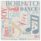 Is dancing your passion? This cool fabric with a word cloud design says it all. Some of the words, interspersed with musical notes, are: breathe, live, love, dance, rhythm and born to dance. This version features warm shades of red, soft yellow and blue on the background colour of your choice. Search ID277 to see additional colour options and matching products with this design.