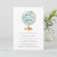 For the future adventurer, choose this sweet travel themed baby shower invitation featuring a watercolor globe illustration adorned with flowers and inscribed with the words "born to explore" in calligraphy script lettering. Personalise with your baby shower details beneath. Invitations reverse to a pattern of white arrows on soft pastel aqua.