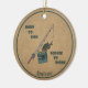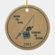 What guy wouldn't love this ornament made especially for him? It says Born to Fish, Forced to Work. It has a linen look background, a fishing pole with a fish he caught and a tackle box on it. It says Born to Fish, Forced to Work and you personalize it with his name. The reverse side is the same design, but says the year rather than his name. The text is in a dark blue green font and there is a ring around the edge made in the same color to finish it off nicely. Definitely a great gift for Dad, Grandpa, Uncle or Friend!