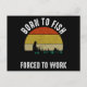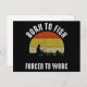 Born To Fish – Forced To Work. This funny vintage fishing accessory is great for men & women who love to catch fish in a lake or river from a boat or on a dock. Perfect for bass, trout, crappie and grouper fishermen and anglers. Do you like to go fly fishing, ice fishing, bass fishing or freshwater fishing? If so, then this fishing humour funny quote design is for you! Features distressed text & a graphic of a fisherman on a dock set against trees & a retro sunset circle.