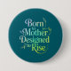 Inspirational round button featuring the phrase "Born to Mother, Designed to Rise" in soft pastel gradient on teal. A meaningful accessory for moms or a thoughtful gift.