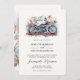 "Born to Ride Together" showcases a watercolor painting of a motorcycle amidst roses on a white background, predominantly featuring blue and red hues, perfect for motorcycle enthusiasts. Editable text and a rose-adorned motorcycle set the tone for an unforgettable motorcycle-themed wedding. This design is perfect for motorcycle lovers, couples with a unique style, minimalist weddings, and those who love to travel.