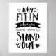 Cool and awesome typography poster. Inspirational and motivational quote to lighten up your day. Why fit in when you were born to stand out. Background colour can be customised to your desired colour.