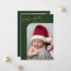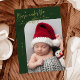 Elegant and modern Christmas theme birth announcement card featuring a hand written scrit text that says "Born under the mistletoe." This is a birth announcement card for the holiday seasons! Add your photos, birth stats, and a message! The background is green.