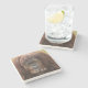 The coasters are gorgeous, a quality feel and heavy weight. They look like a precious archeological find. A rustic stone juxtaposed with a modern floral black and white print. I like the way the print goes slightly imperfect on the cut stone edges giving them a kind-of natural beauty.