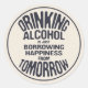 "Drinking alcohol is just borrowing happiness from tomorrow." T-shirts, sweats, cards, stickers, novelty gift swag.