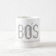 coffee mug features BOS - Airport abbreviation for Logan International Airport, Boston, MA. Grungy urban grey text