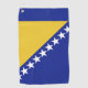 The golf towel exceeded my expectations! My husband actually approved of it! He liked the picture quality, thickness and overall usefulness of the golf towel I ordered to commemorate his lowest ever golf score. He liked it so well that I ordered 8 more towels with photos of his home golf course. Each one of the eight has the name of one of his golf group members. I will give them as party favors at my husband's 70th birthday party later this year. The different names were easy to add because the Zazzle template is so very easy to use. The colors were bright and authentic in all 9 of the towels that I made. The one of the 9 that I ordered has come out of the wash and line dry looking great.