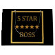 A graphic image of five gold stars with the text 5 Star Boss by artist/designer Charmaine Paulson on a gift bag.