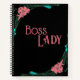 "Boss Lady" Journal. Empower your female boss this National Boss's Day with a stunning "Boss Lady" journal. Featuring an elegant black background and sophisticated Art Deco-style floral side frames in shades of turquoise, dusty rose, cream, and foliage green, this journal cover is both stylish and empowering. Perfect for jotting down notes, ideas, or reflections, it’s a thoughtful gift that celebrates her leadership and grace. Show her how much she inspires with this beautifully designed keepsake! Check out the coordinating coffee/tea mug and desk mat. Make her day with one, a pair or all of these items.