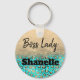 Boss Lady Glittery Turquoise Leopard Custom Key Ring