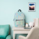 On this stylish back pack are gold luminous flowers raining down on soft muted pink, blue, and green pastels. Can be personalised on the front pocket or keep as is with the phrase "Boss Lady"