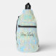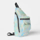 On this stylish sling bag are gold luminous flowers raining down on soft muted pink, blue, and green pastels. Can be personalised on front and back or keep as is with the phrase "Boss Lady"