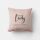 Boss Lady Rose Gold Blush Glitter Personalised Throw Pillow -- a treasured keepsake gift for a boss lady entrepreneur. If a woman in your life has launched a business, here is a thoughtful holiday, birthday, mother's day, or business anniversary gift... a throw pillow with her name below an artistic Boss Lady logo graphic. On a delicate blush pink background, our feminine Boss Lady pillow features blush glitter overlays on top and bottom for added sparkle. You can easily revise the example name using the personalisation template.