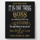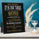 Celebrate leadership with this elegant boss plaque featuring a black background, white and gold text, and the heartfelt quote: “It’s one thing to be a boss, another thing to be a mentor, but a completely different thing to be a leader. We are proud to have been led by a boss, mentor, and leader like you.”