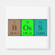 Boss spelled out as B Os S (Boron Osmium Sulphur) on a magnet for the scientist in you. <br />Find more periodic table name products at <a href="http://mipdatabase.com/products/">mipdatabase.com</a>! Can't find what you want? Then tell me what you would like on the <a href="http://www.mipdatabase.com/products/request.php">request a product</a> page.