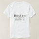 Modern, urban graphic features latitude and longitude coordinates of Boston, Massachusetts