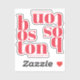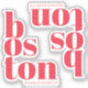 Show your love for Boston, Massachusetts with this eye-catching modern typographic sticker. The design features the word "Boston" split across three lines in bold, decorative lowercase letters, highlighted in vibrant red. Customisable text options in a sleek, thin sans serif font add a subtle, contemporary touch, making it perfect for personalisation. Ideal as a vacation keepsake, laptop decal, decorative accent, or a stylish branding piece for a Boston-based business or event.