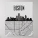 Boston Massachusetts City Skyline With Map Poster