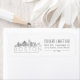 This label features a stylised illustration of the city's unique skyline with its name underneath.