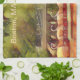 Rich jewel tones of colourful Boston Swan Boats Summer art designed kitchen towel.