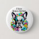 Cute Boston Terrier Dog surrounded by pink, yellow and blue flowers. Ai art. Cute gift for Boston Terrier owners. I Love Boston Terriers.