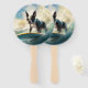 Boston Terrier Beach Surfing Painting Hand Fan