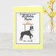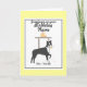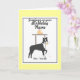 A dog helping its self to a chunk of birthday cake. Add text front and inside.