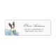 Elegant blue hydrangea and boston terrier personalised return address labels. This design features hand painted watercolor floral and dog illustration.
