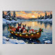 Bring friendly, tuxedo-coated charm to your holiday season with this adorable Boston Terrier Christmas design! This magical scene features three cute, dapper Boston Terriers sitting contentedly in a cozy wooden boat, gently floating on a serene snowy lake at sunset. The boat is beautifully adorned with glowing Christmas string lights and fragrant pine garlands, while the dogs wear festive scarves. They are surrounded by colorful wrapped presents and cheerful holly branches. Soft snowflakes gently fall, and the shimmering reflection of the lights on the water creates a truly magical winter holiday atmosphere. This design is a perfect Christmas gift for any Boston Terrier owner, dog lover, or admirer of festive and beloved small dog art, capturing the serene joy of the season.