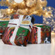 Cute Boston Terrier puppy is awaiting the arrival of Santa Claus on Christmas Eve.