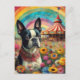 An adorable Boston Terrier in a field of wildflowers with a circus tent in the background AI generated art