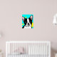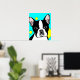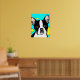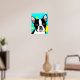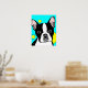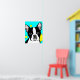 Boston Terrier portrait illustration on aqua background with yellow circles to brighten the walls of any dog lover's room, or children's playroom