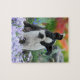 A young cute Boston Terrier female puppy, black with white markings, in a flowery garden. Boston Terriers, also called Boston Bulls or "American Gentlemen", are a gentle, friendly and intelligent dog breed for companionship. The puppy-eyed doggy was photographed by Katho Menden, this photo puzzle game is an enchanting gift idea for doglovers. http://www.zazzle.com/kathom_photo
