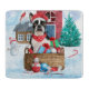 Boston Terrier Dog In snow Christmas Dog House Cutting Board