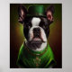 Boston Terrier dog in St. Patrick's Day Dress Poster
