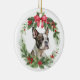 Boston Terrier Dog Red Bow Holly Wreath Ceramic Ornament
