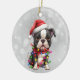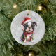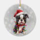 Boston Terrier Dog Wrapped in Christmas Lights Ceramic Ornament