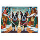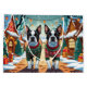 This festive design captures the joyful spirit of the holiday season, featuring an adorable dogs.Nestled in a winter wonderland, complete with a decorated Christmas tree, and beautifully wrapped presents. Snowflakes gently fall, adding a magical touch to the scene, while the vibrant colours of the holiday decorations create a warm and cheerful atmosphere.