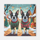 Boston Terrier Dogs Christmas Snow Holiday Magnet