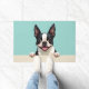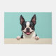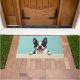 The soft pastel aqua background adds a fresh and cheerful vibe, perfect for welcoming entryways. Designed with extra space at the top and bottom, it allows easy personalization with names, welcome messages, or custom text—making it ideal for unique dog-themed doormats and thoughtful gifts.