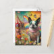 An adorable Boston Terrier fairy in a field of wildflowers with a circus tent and clown in the background AI generated art