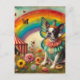 An adorable Boston Terrier fairy in a field of wildflowers with a circus tent in the background AI generated art
