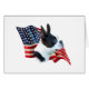USA! America! Shout your pride with this awesome flag Patriotic background with this AKC dog breed Boston Terrier in the forefront. Show your pride with this design on a t-shirt, mug, and much, much more!