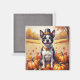 Boston Terrier In Autumn Leaves Thanksgiving Art Magnet