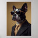 Boston Terrier in Pinstripe Suit and Sunglasses Poster