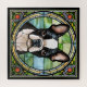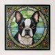 Boston Terrier dog jigsaw puzzle artistically done in a faux stained glass window mode.